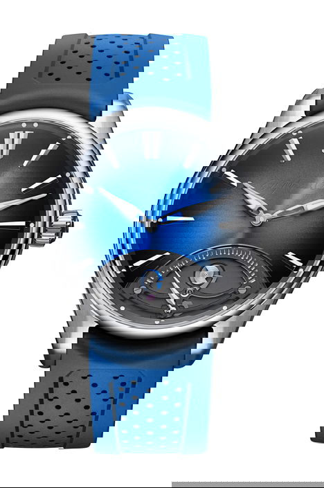 Inspired by measuring instruments and speedometers, the Pioneer Retrograde Seconds combines technical ingenuity with visual appeal, including a minimalist design and a discreet logo on a Midnight Blue fumé dial.
